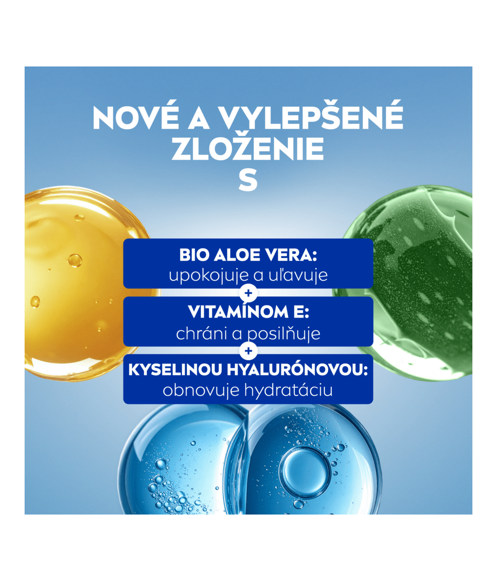 - Prírodné zložky: Obsahuje bio aloe vera, vitamín E a kyselinu hyalurónovú pre intenzívnu starostlivosť.