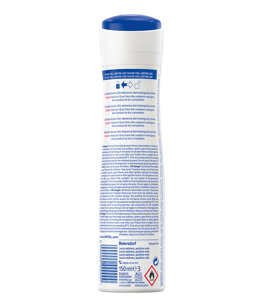 Nebezpečenstvo: Mimoriadne horľavý aerosól. Nádoba je pod tlakom: pri zahriatí sa môže roztrhnúť. Uchovávajte mimo dosahu tepla, horúcich povrchov, iskier, otvoreného ohňa a iných zdrojov zapálenia. Nefajčite. Nestriekajte na otvorený oheň ani iný zdroj vznietenia. Neprepichujte alebo nespaľujte, a to ani po spotrebovaní obsahu. Chráňte pred slnečným žiarením. Nevystavujte teplotám nad 50 °C/122 °F. Do odpadu vhadzujte iba úplne vyprázdnenú fľašu. Používajte výhradne na stanovený účel. Nestriekajte do očí. Nepoužívajte na poranenú či podráždenú pokožku. Vyvarujte sa dlhšej aplikácie a priameho vdychovania. Uchovávajte mimo dosahu detí.