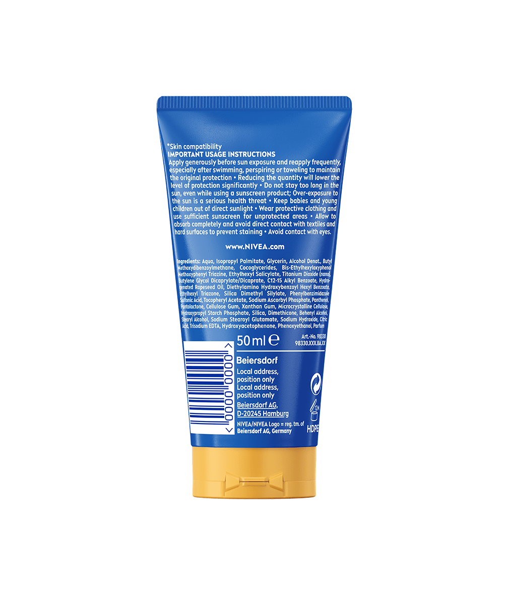 Aplikujte v dostatočnom množstve pred slnením a na zachovanie ochrany pravidelne opakujte, najmä v prípade potenia, po kúpaní a po osušení uterákom. Menšie množstvo významne znižuje stupeň ochrany. Na slnku nezostávajte príliš dlho, aj keď používate opaľovací prípravok; nadmerné slnenie vážne ohrozuje zdravie. Ani výrobky proti slnečnému žiareniu neposkytujú 100 % ochranu. Dojčatá a malé deti nevystavujte priamemu slnečnému žiareniu. Chráňte dieťa pred slnečným žiarením oblečením a používajte dostatočné množstvo slnečnej ochrany na nezakryté miesta. Nechajte dôkladne vstrebať a vyhnite sa priamemu kontaktu s oblečením a tvrdými povrchmi, môže zanechať stopy.