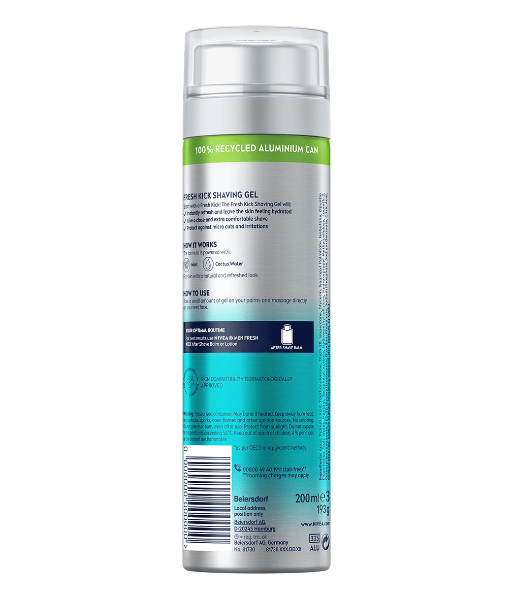 Hladko oholenú tvár počas chvíľky a svieži vzhľad vďaka zloženiu s mätou a kaktusovou vodou, to vám zaručí: NIVEA MEN Gél na holenie Fresh Kick.