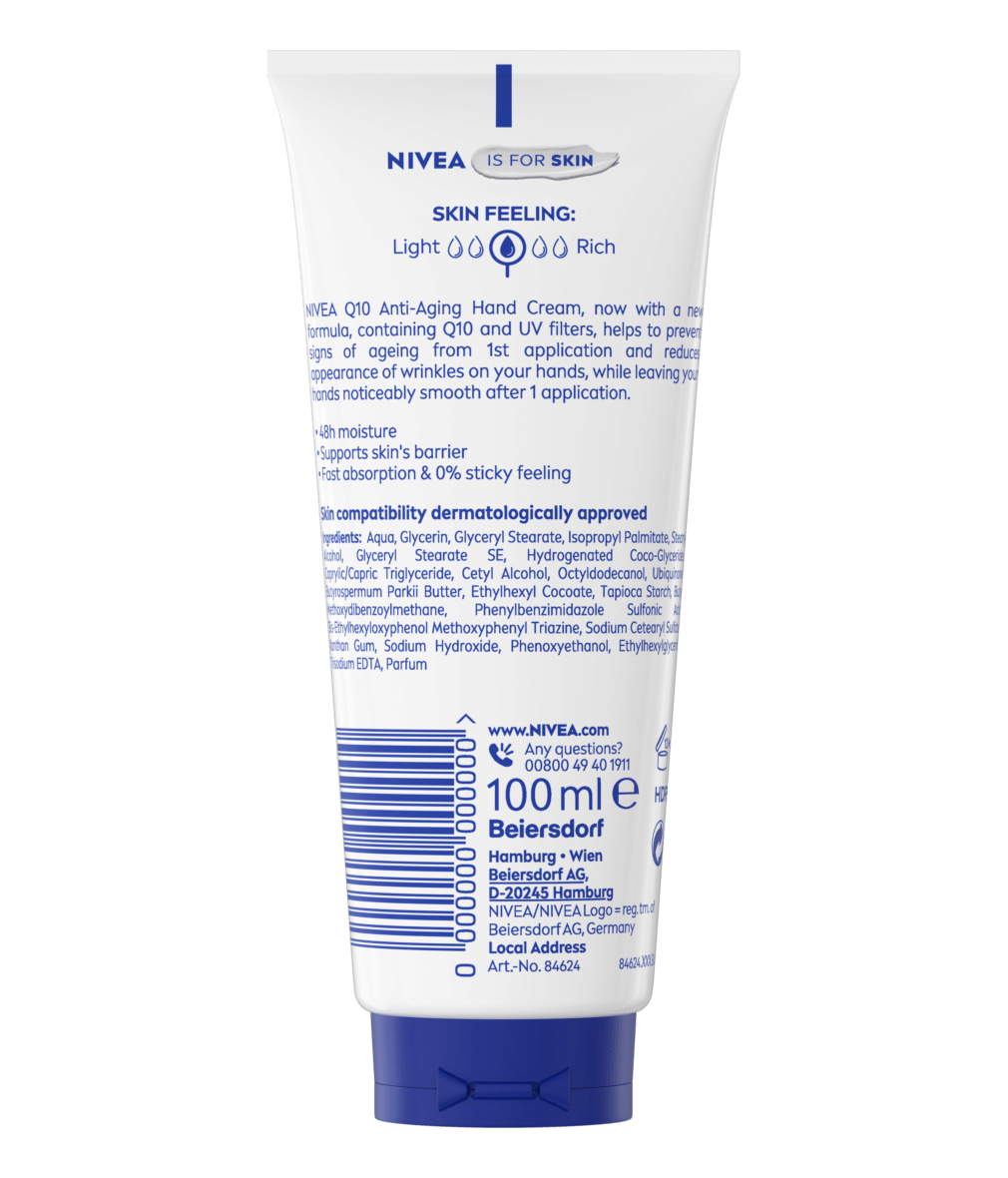 I na pokožke rúk vidno váš vek. Predchádzajte prvým príznakom jej starnutia vďaka koenzýmu Q10 a kombinácii UVA a UVB filtrov: NIVEA Omladzujúci krém na ruky Q10.