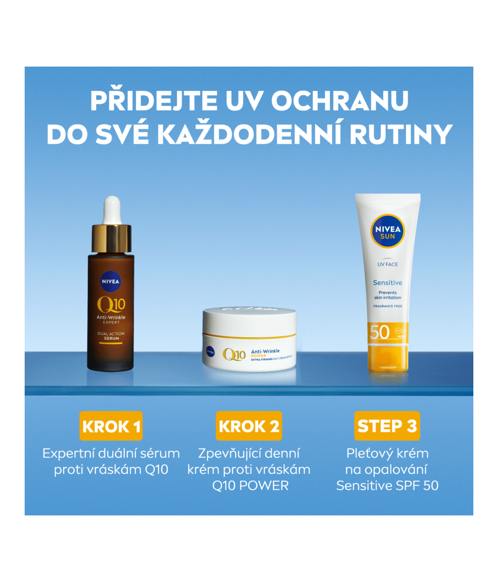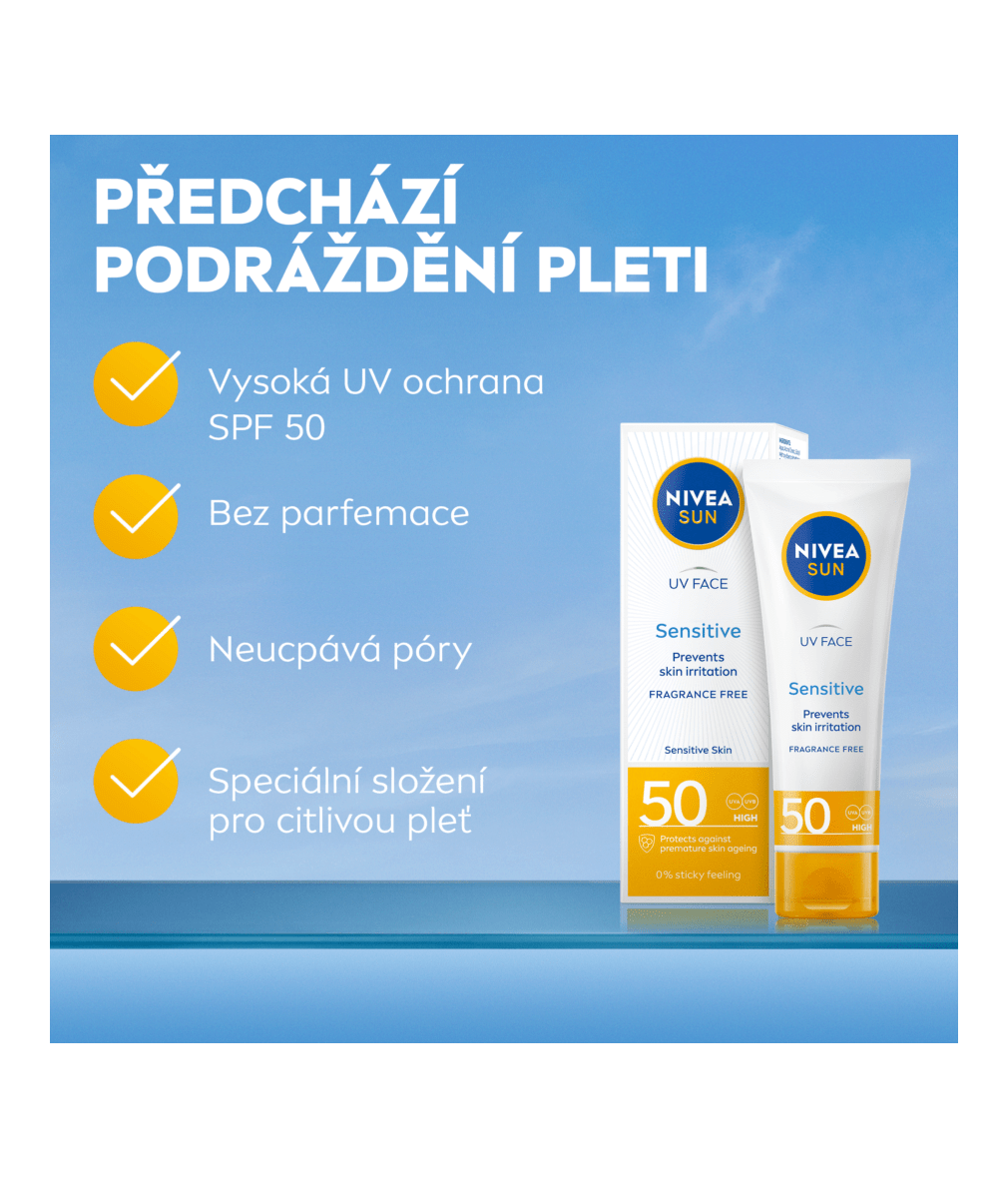 Ak máte citlivú pleť, siahnite po: NIVEA Pleťový krém na opaľovanie Sensitive SPF 50.