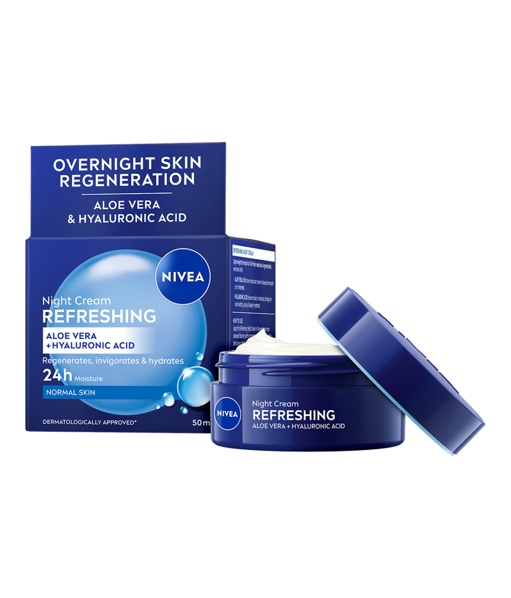 Využite nočné procesy regenerácie a zásobte svoju pleť vitamínmi. Ošetrujúce zloženie s aloe vera a kyselinu hyalurónovú pleť hĺbkovo hydratuje: NIVEA Regeneračný nočný krém.