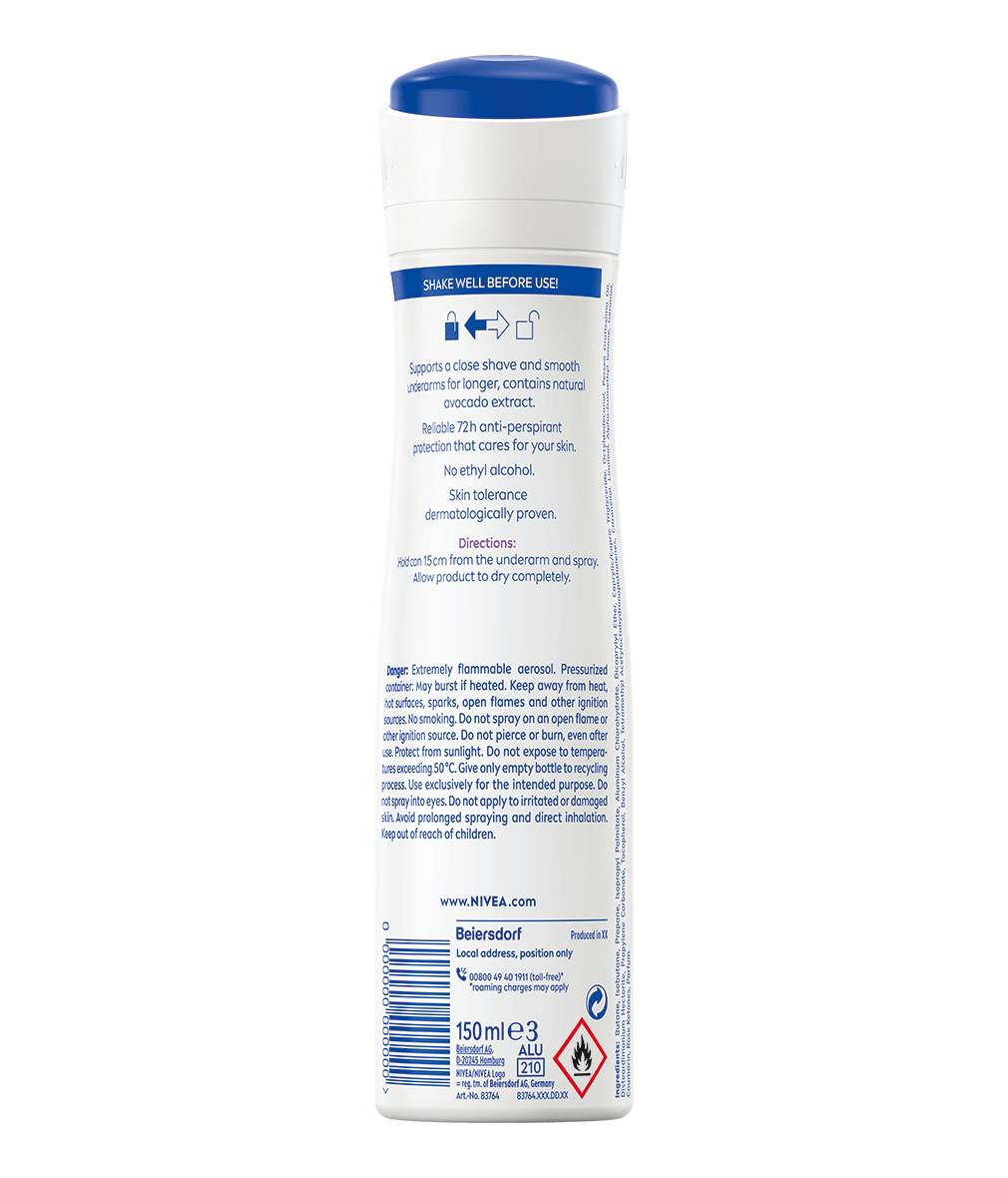Vychutnajte si hebké a hladké podpazušie v kombinácii s až 72-hodinovou ochranou proti poteniu a pachu potu. Siahnite po účinnom riešení s nežnou vôňou: NIVEA Sprej antiperspirant Double Effect.