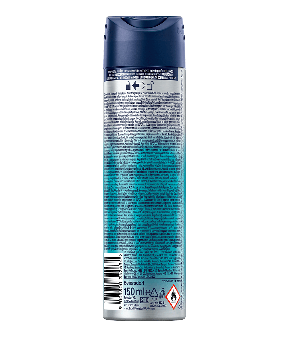 Svieža vôňa mäty bude všade s vami až 72 hodín. Nedovoľ potu, aby ťa vyradil z hry: NIVEA MEN Sprej antiperspirant pre mužov Fresh Kick.